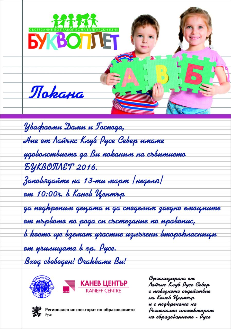 Покана Община Русе - Буквоплет 2017
